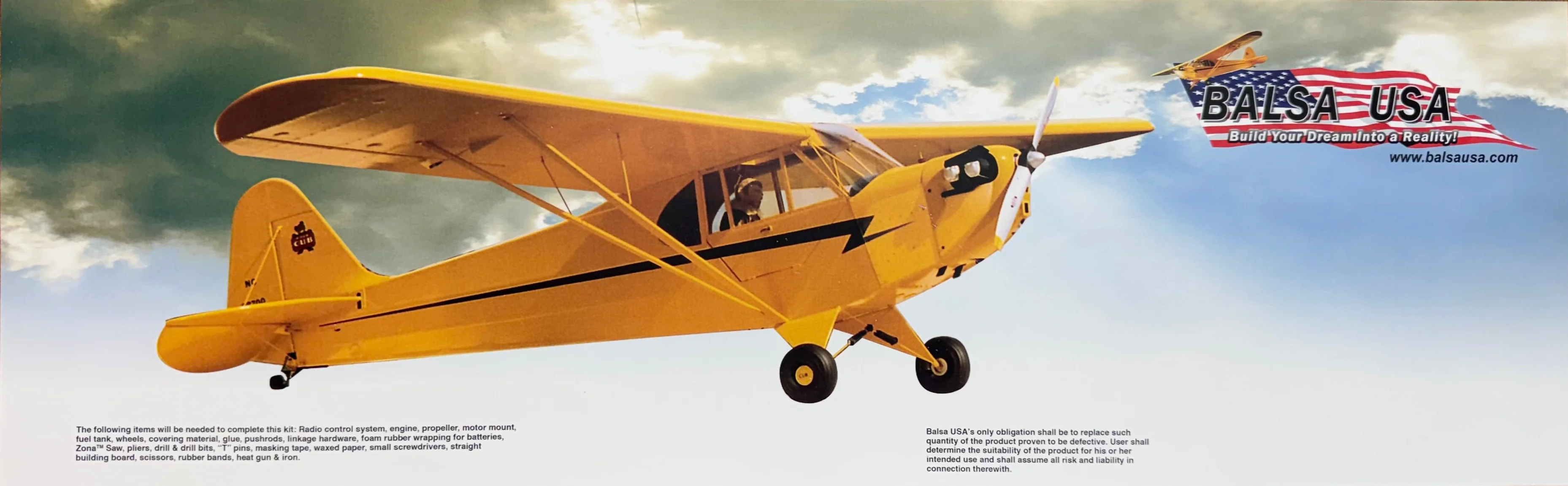 During the past 70 years since its introduction, the Piper Cub has probably been responsible for training more full-scale pilots than any other single aircraft in history and is still going strong today. Balsa USA's 1/4 Scale model holds up true to this fine tradition. No other Cub kit is as complete for the price. Accurate in outline, our Cub kit is as easy to build as it is to fly. A complete step-by-step photo illustrated instruction manual leads you through the construction of the model from start to finish. The hardware package is absolutely complete with over 100 items.